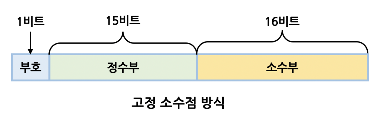 고정 소수점 방식은 소수점의 위치를 미리 지정해놓고(고정) 소수를 표현하는 방식이다.