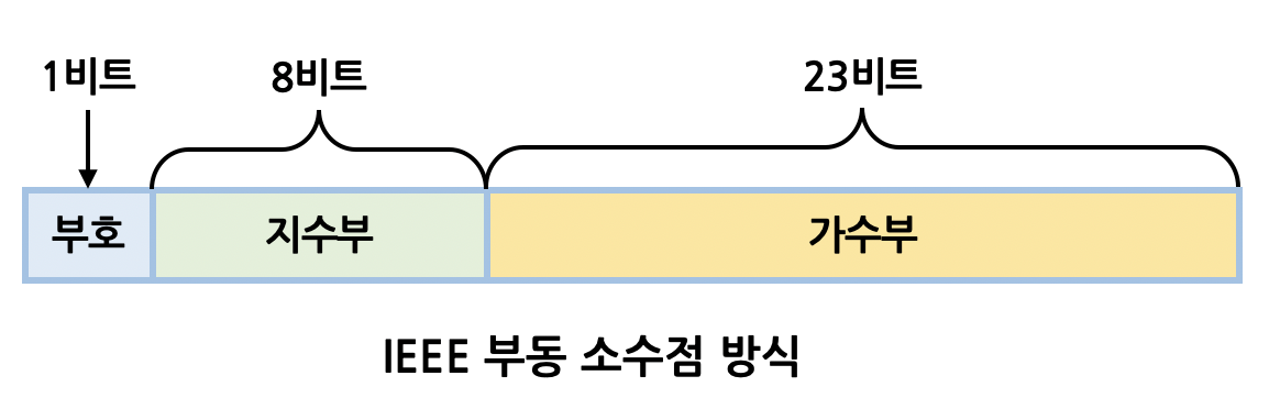 | 부호부(1비트) | 지수부(8비트) | 가수부(23비트) |