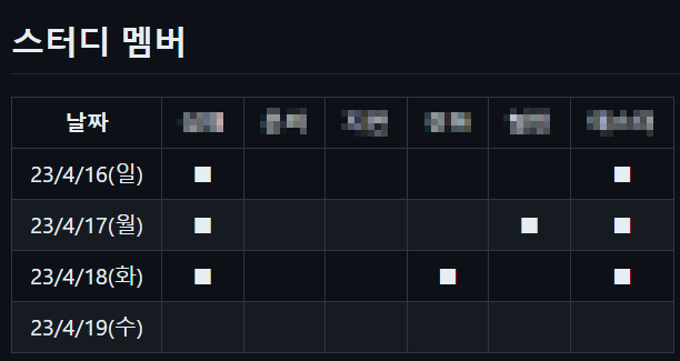 처음에는 README 파일에서 아래와 같이 "스터디 멤버만" 읽어오는 로직을 구현했었다.