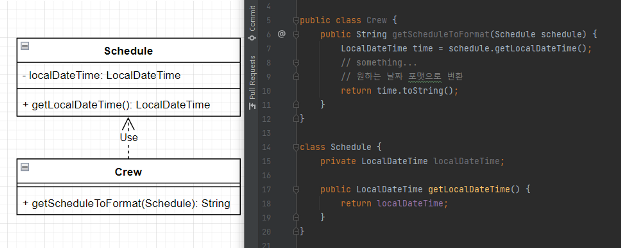 - 메서드 내 대상 클래스 메서드 호출