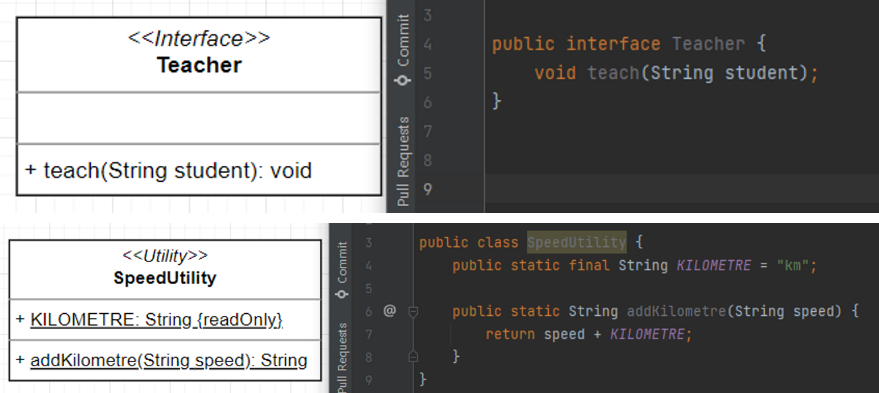 아래 이미지는 인터페이스와 유틸리티 클래스를 스테레오 타입으로 사용한 예시이다.