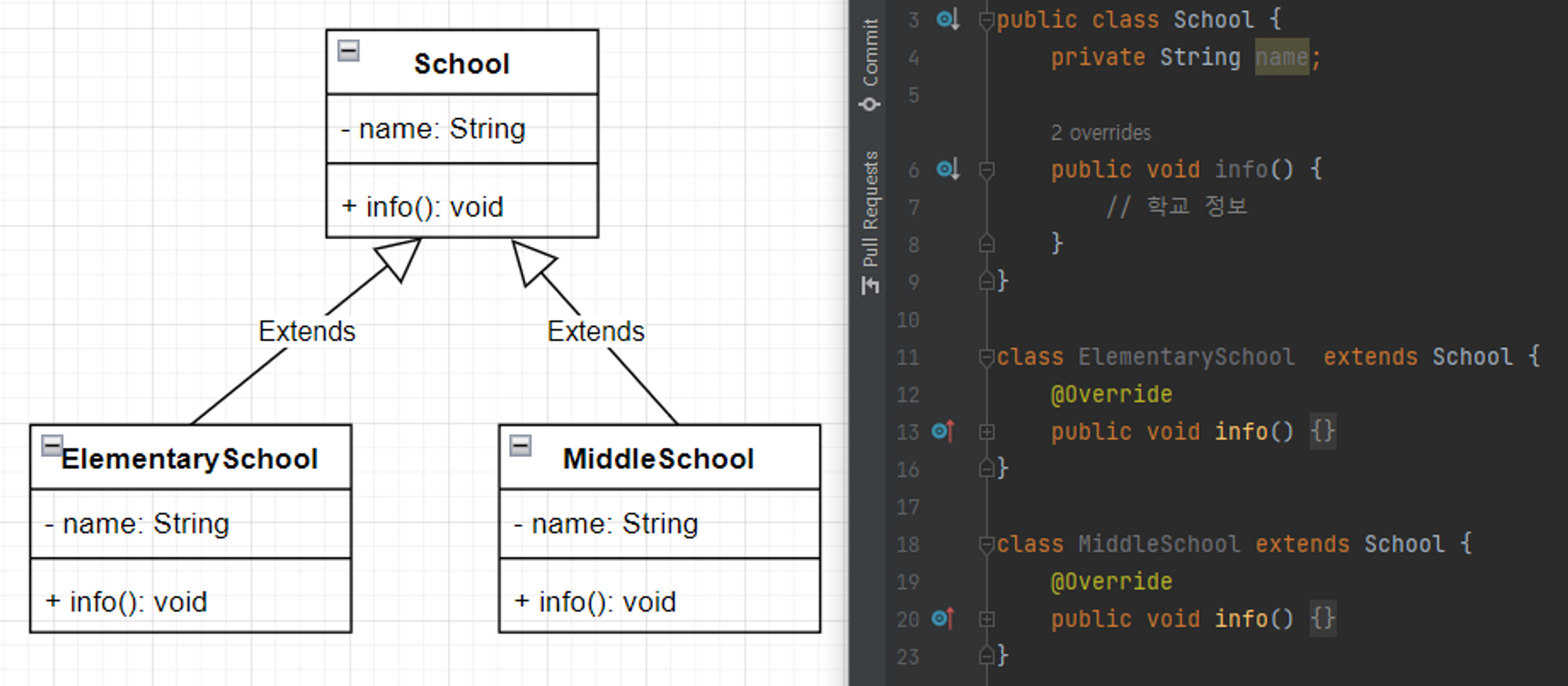 부모 클래스는 자식 클래스를 일반화(Generalize) 한 것이고, 자식 클래스는 부모 클래스를 구체화(Specitialize)한다.