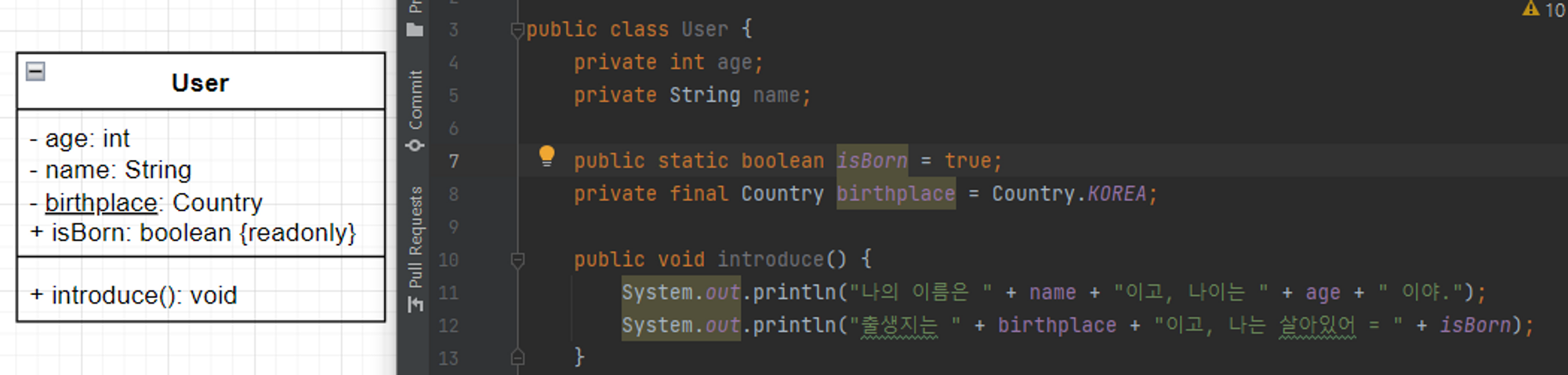 클래스의 필드와 메서드에는 접근제어자, 필드명, 메서드명, 데이터 타입, 매개변수, 리턴 타입 등을 나타낼 수 있다.