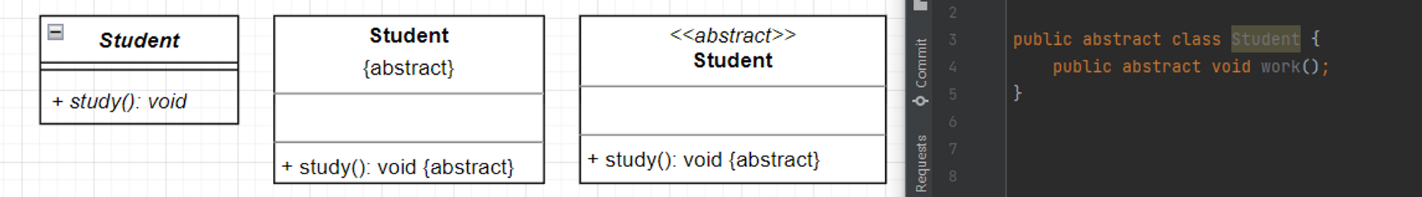 추상 클래스란 하나 이상의 추상 메서드(구현체가 없는 메서드)를 포함하는 클래스로 공식적으로는 두 가지 방식의 표기법을 제공하고 있다.