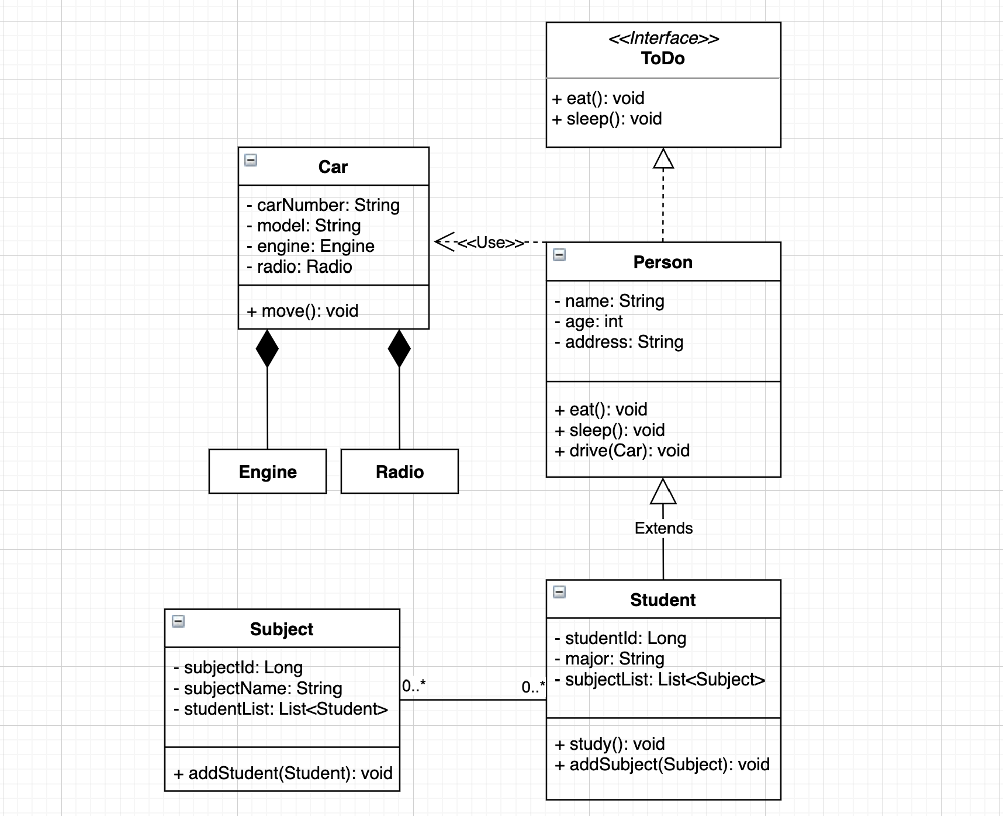 클래스 다이어그램의 주된 목적 중 하나가 클래스간의 관계를 한 눈에 보고 의존 관계를 파악하는 용도로 사용한다.