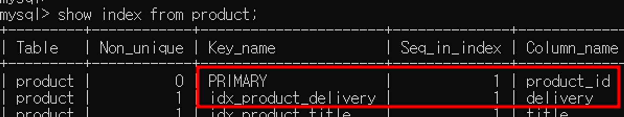 그리고 프라이머리 키(product_id)와 배송(delivery) 컬럼에 인덱스가 걸려있는 상태이다.