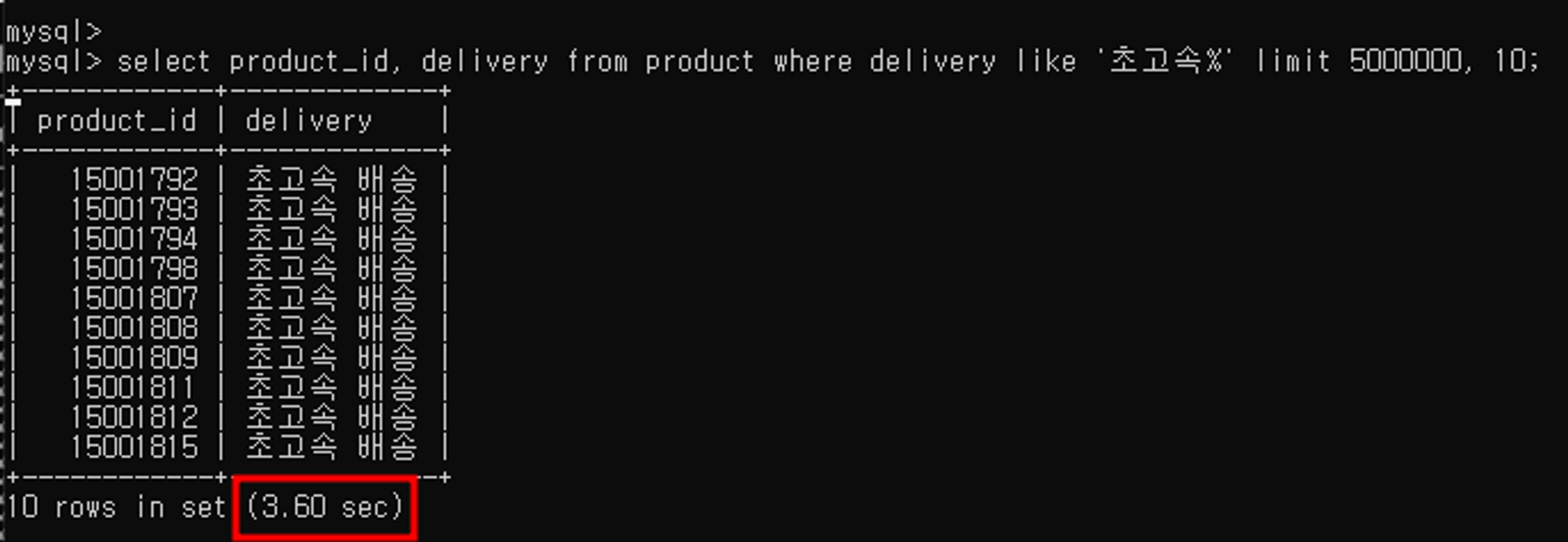 where delivery like '초고속 배송%'